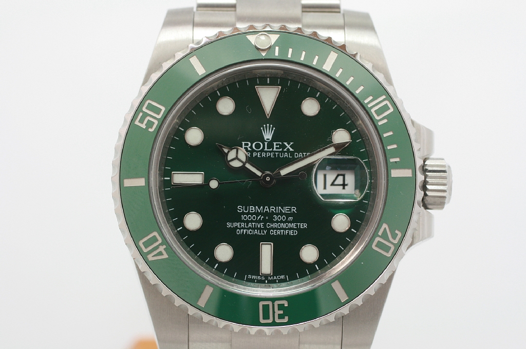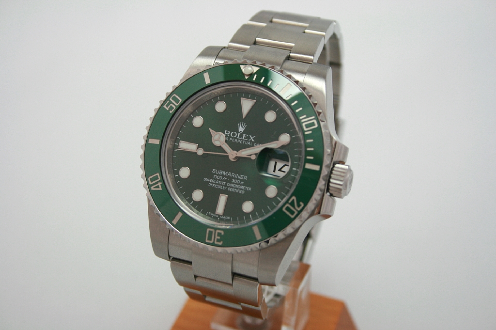 NEWグリーサブです、ダイヤルも グリーンになり正にグリーンサブと呼ぶに相応しいモデルですね、程度抜群、正規保証付~気合いの高価買取りさせて頂きました!!