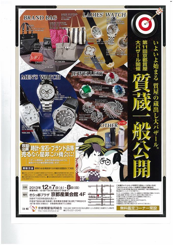 いよいよ 京都質屋大バザールの開催です、舞鶴のお客様京都市内は少し遠いですが一見の価値はありますので是非ご来場頂けると幸いです。