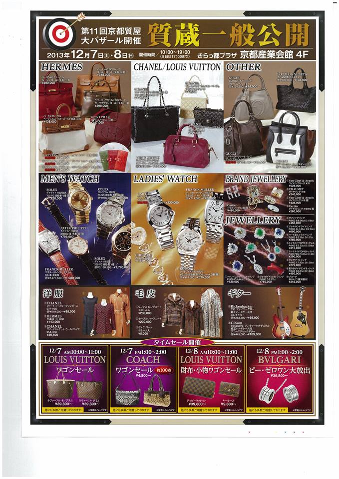 京都質屋大バザールの為12/2~12/11 ネット販売のお休みをいたします、ご迷惑おかけ致します、バザール出品しないデジタル家電や釣り道具は出品できると思いますので、準備出来次第アップいたしますが12/7~12/9問い合わせ直接販売が出来ないと思いますのでご了承ください。