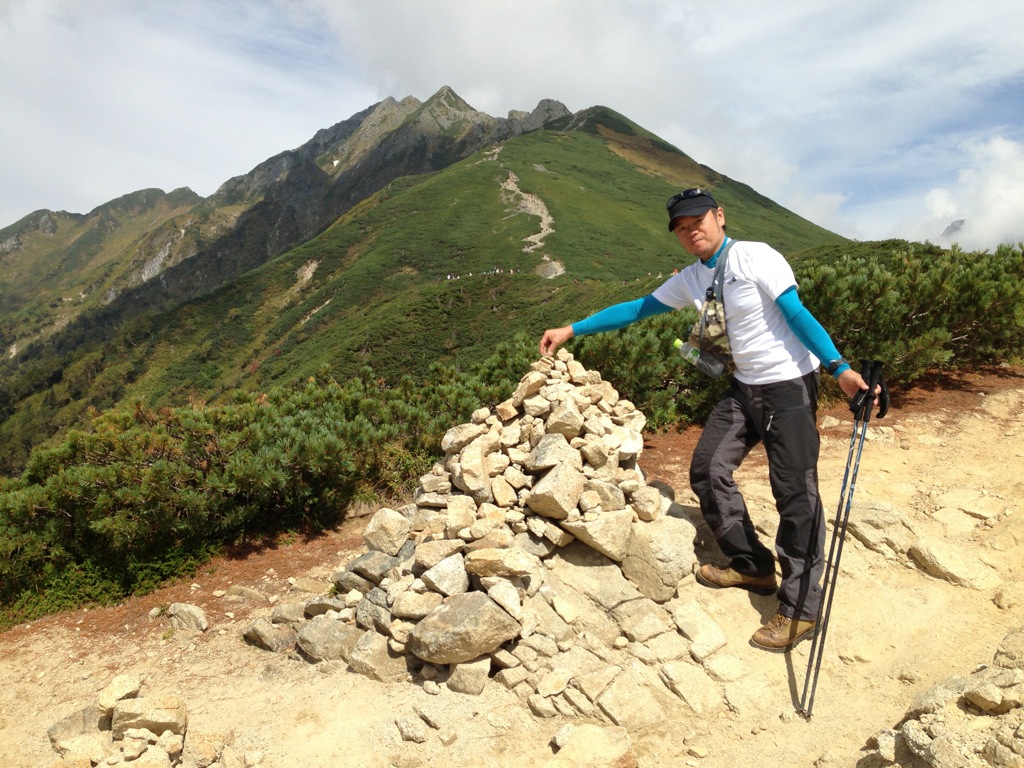 登山祈願をして、いざ西穂高岳へ出発 ~しましたが今回は初めての高山病っぽい症状が息があがり、軽い頭痛が・・・・少し休憩して息を整え一個目の難所 独標を目指します。