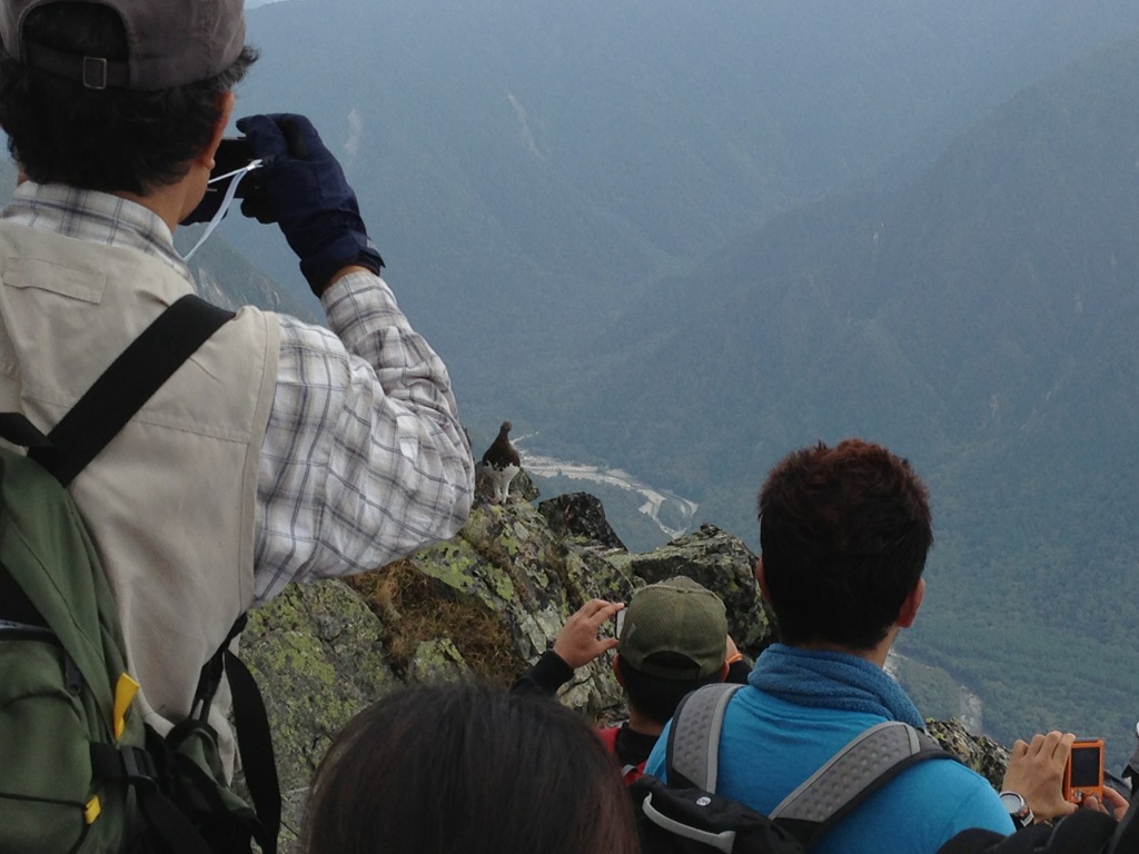 下山を決意するも下山渋滞、しかも独標に雷鳥が現れ撮影会が始まり更に混雑が・・・・しかしこんな間近で雷鳥が見れるは幸運としか言えませぬ!